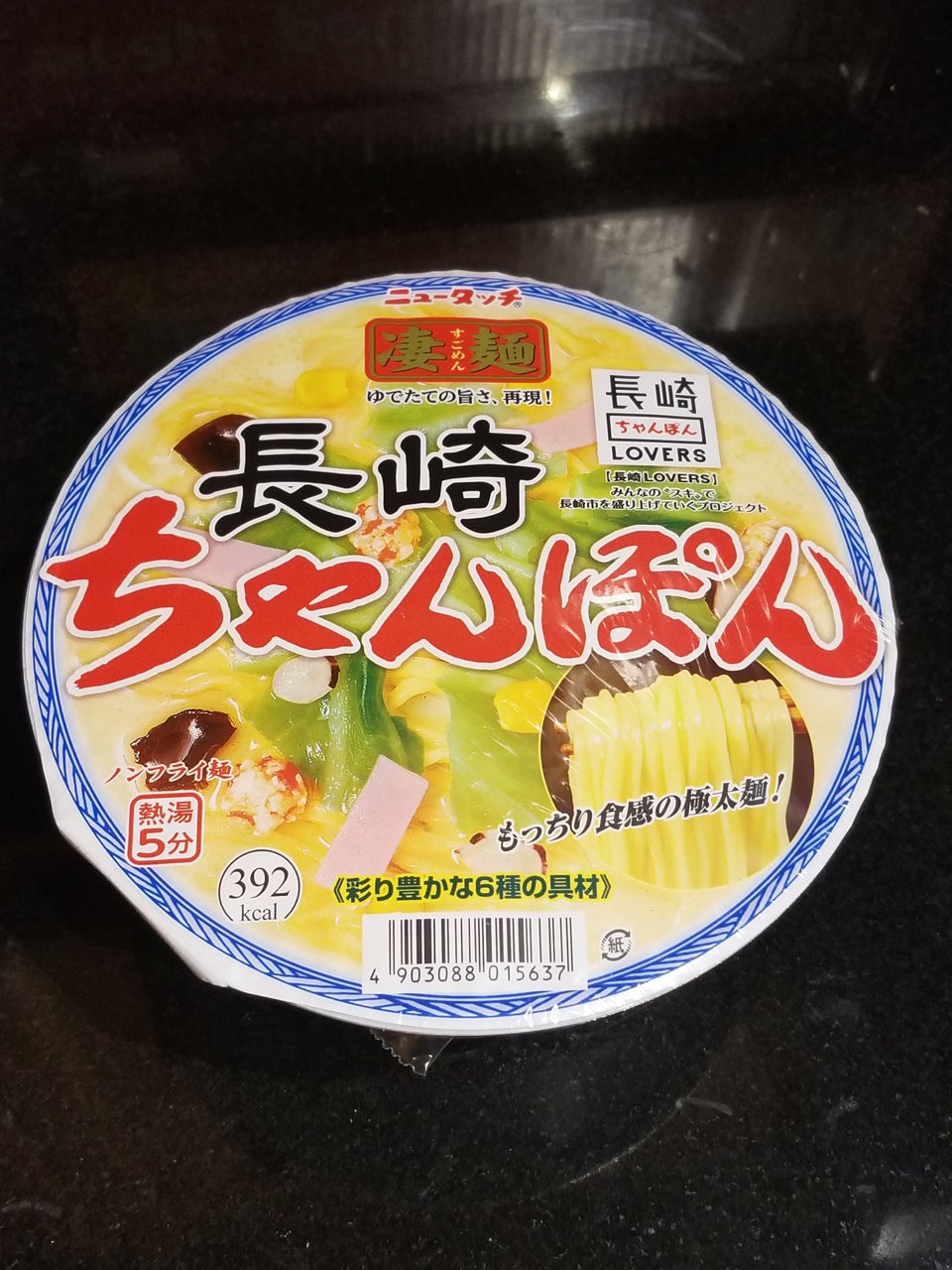 さてさて、まるでインスタント麺レビューブログのようになってきてしまったこのブログ。凄麺シリーズ第3弾。 長崎ちゃんぽん。皆さんご存知 長崎のご当地麺でございます。 追いネギしました。 やっぱりこの凄麺、麺が美味しい。ツルツル、もちもち弾力のある太麺。麺のハズレにちょくちょく出会うカナダのラーメン屋と比べたら(美味しいのもあるけど)こっちのが断然美味しいのです。 スープは スガキヤを少し薄味にしたような感じ。スガキヤLOVEな私はこういうの大好き。具もキャベツや 可愛いピンクのかまぼこみたいなのエビボールみたいなのと色々入ってました。夫はこれあんまりみたいでしたが 私は好き。 ただ、この長崎ちゃんぽん。 私 高校の時の修学旅行と大学生時代に旅行で2回行っているんです。だだ 皿うどんは覚えているのですがちゃんぽんを食べた記憶がないのです。絶対食べてると思うのですけど。。。その後 どこかで食べたことは確かなかったと思うので本物との比べようが。。。