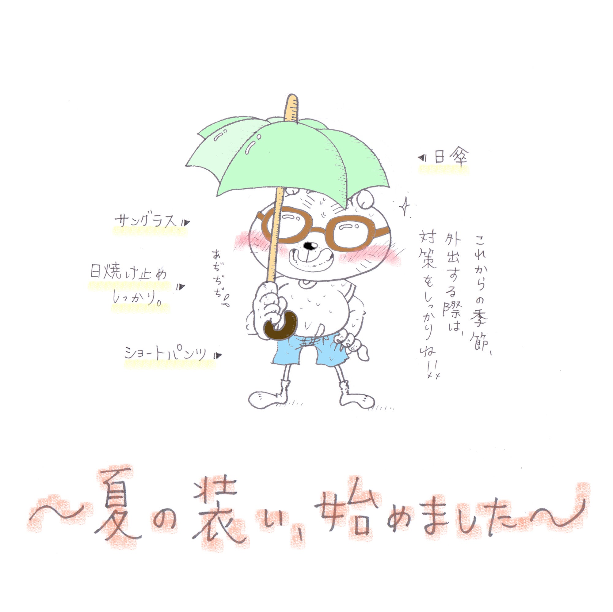 ベアさん、今年も、”日傘男子”始めました。 数年前に使い始めてから、 毎年、夏季の外出時には、日傘が必須となったベアさんなのですが。 最近では、 それに加えて、日焼け止めとサングラスも加わり、 更に紫外線&暑さ対策バッチリとなっております。 ここ数年の夏の暑さは異常ですしね。 頭上から降り注ぐ直射日光を遮断するだけで、 熱中症のリスクも、かなり下がるんじゃないかと思いますし・・・。 そして、性別、年齢問わず、 ちゃんと紫外線対策することが大切だと、しみじみ感じる今日この頃。 ・・・ってな訳で、対策をしっかり講じて、 暑さと紫外線に負けずに夏を乗り切りたいと考えている、 我が家のベアさんで御座いますよ〜〜。 かく言う私は、洗濯物を干したり取り込んだりする際に日焼け止めを塗布し忘れ、既に、ちょっぴり腕がパン